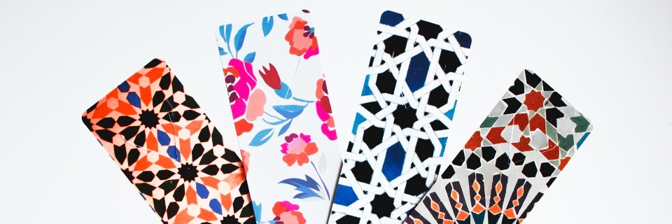 A handmade, fully customised colour bookmark, featuring a custom design of your choice, or chosen from a selection of pre-made designs. Bookmarks measure 5cm wide by 15cm tall and are printed on glossy card with rounded corners.